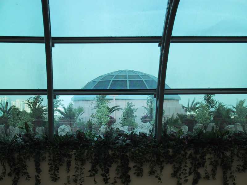 The Abu Dhabi airport had this cool structure, where a column on the ground floor duty-free shopping area rose to become the ceiling of the waiting area above it. Here are three pictures of that.