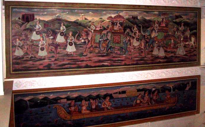 On the floors with rooms, there were some balcony areas where you could look up to the roof and down to the main floor of the hotel. At one of these areas, there were some tapestries on the wall, which looked quite nice. Here are three shots of those tapestries.